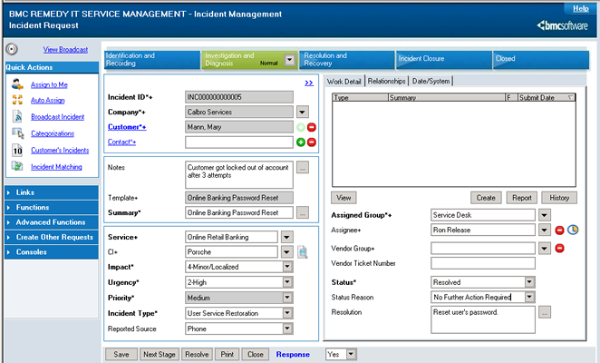 First and foremost, it automates incident management processes which reduce the number of incidents seen, improves resolution durations and takes steps to reduce if not completely prevent future incidents of the same nature from happening again. This is a captioned (no narration) video outlining the process for submitting a remedy ticket per ermc policy, (your results may differ). Remedy ticket system this person is responsible for the risk mitigation, for any consequences of the change, and thus, obviously, for the communication with the other technical towers that need to be aware of the. This is a captioned (no narration) video outlining the process for submitting a remedy ticket per ermc policy, (your results may differ). Mar 06, 2018 · the remedy incident management system tool gives it's users a competitive advantage for a number of reasons.